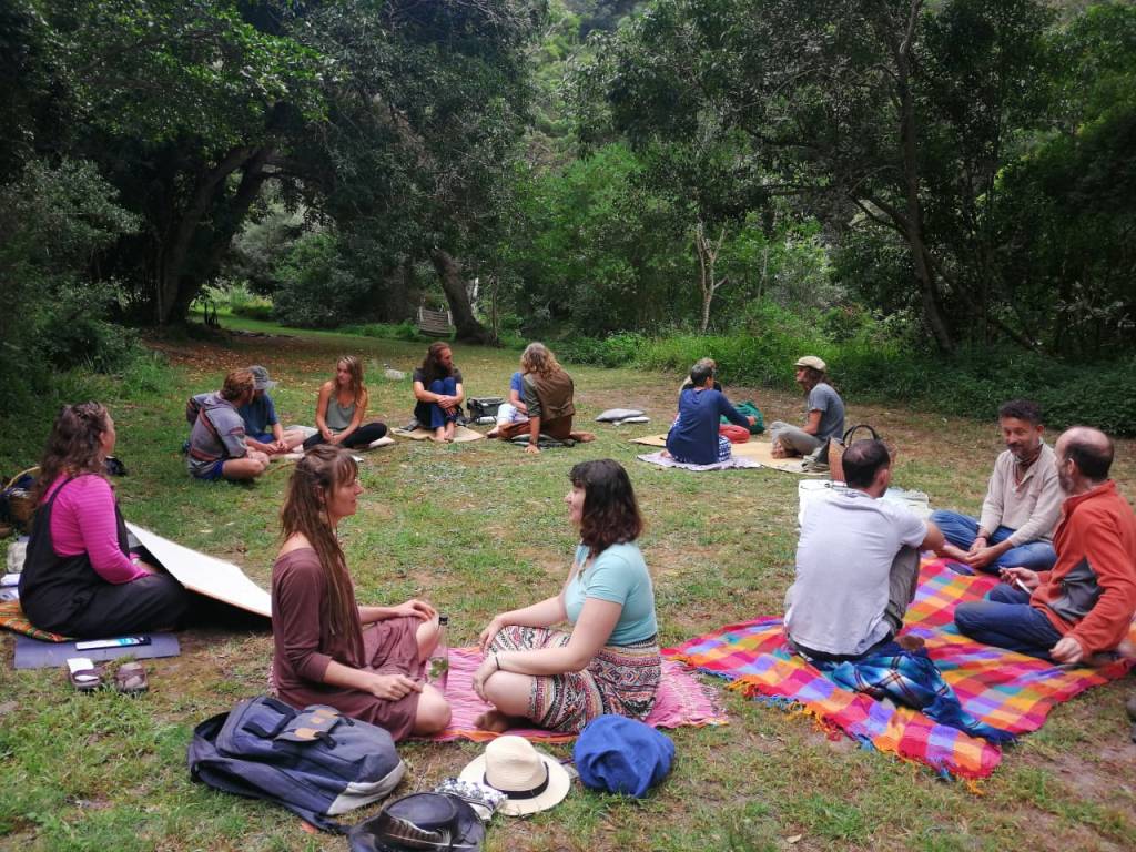 Kate Curtis, our colleague and WTR facilitator from the Garden Route in South Africa (Western Cape), facilitated an encounter called “Soil-Soul Messages from the Underworld” last month. It was based on the Spiral of the Work That Reconnects and led to a Council of all Beings where they used masks to speak for the soil. It was a beautiful day in a magical setting next to a river. Hereunder we have posted a video that was produced after the event and some of the pictures Kate shared with us.