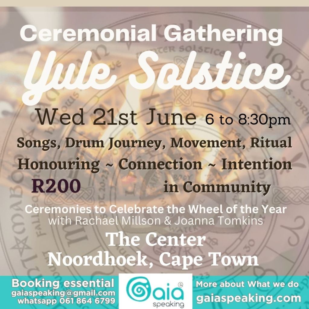 Dear Souls on this Journey, we gather early in June, for the first time in Tamboerskloof (Cape Town), to share our voices with songs expressing our gratitude, pain, connection and love for the evolving Gaia we call Home!