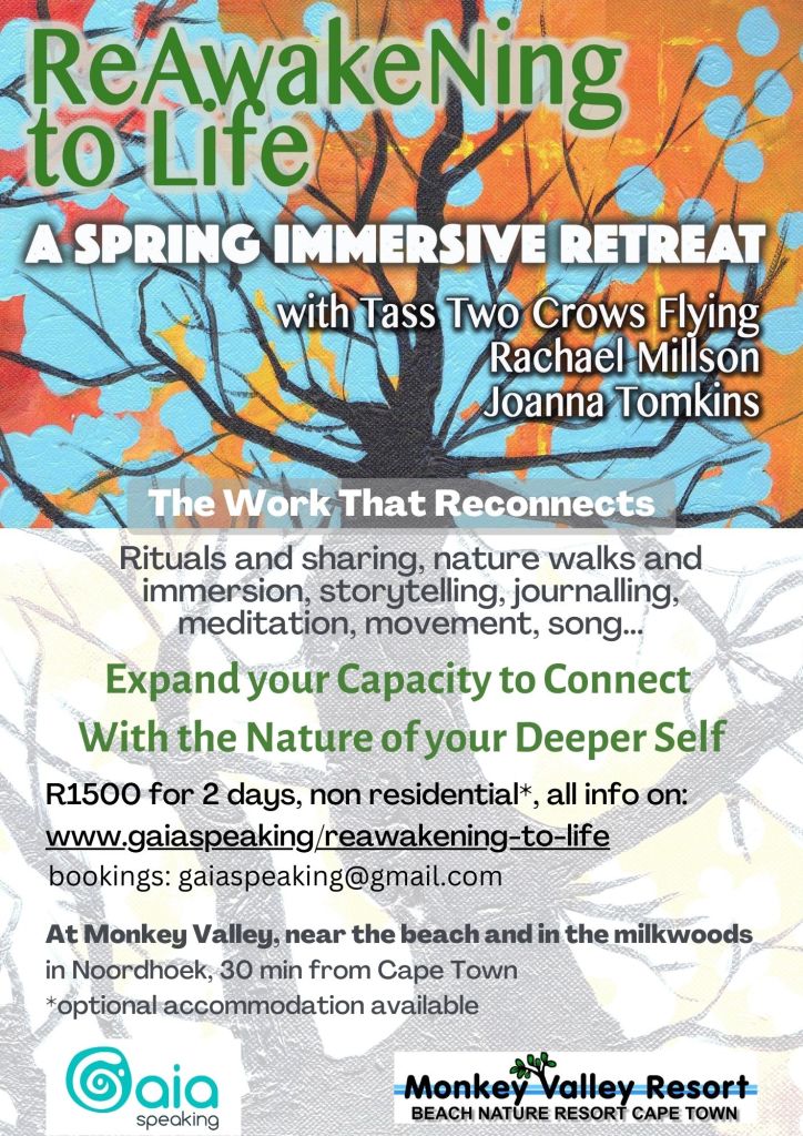 For bookings, which are essential, please send us a message on 0618646799 (Rachael), 0834165572 (Joanna) or gaiaspeaking@gmail.com