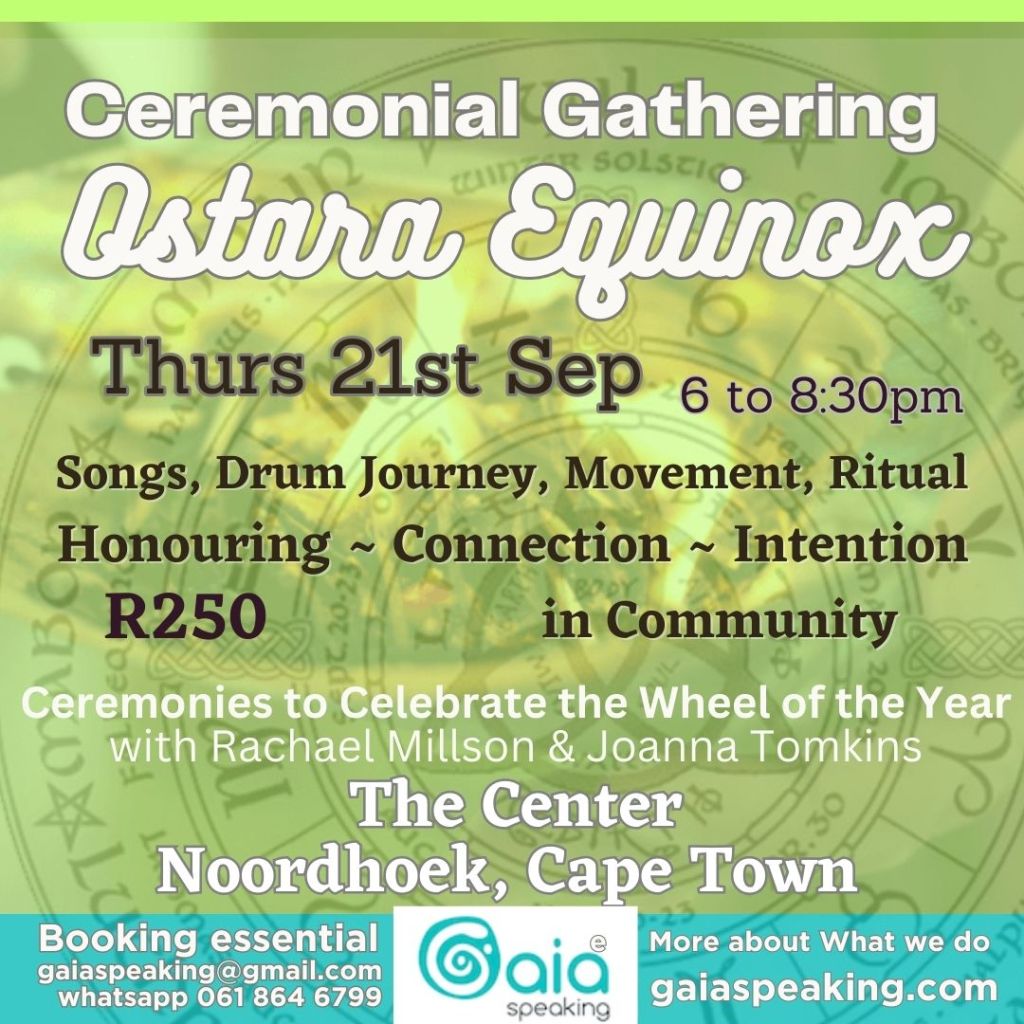 Exchange: R250 pp (children over 12 welcome upon request) – Early Bird until 15th Sep R200 pp on Quicket https://qkt.io/ostaraequinox