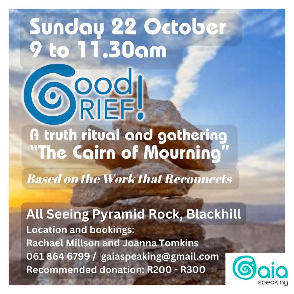 Join us in the Gaia Speaking collective locally to be a part of this growing network, instrumental for our times. Find out about options for training if you are personally called to incorporate the Work that Reconnects wisdom in your own facilitation here in South Africa.